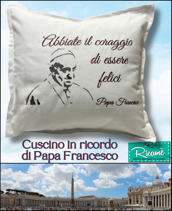 #PapaFrancesco #CuscinoRicamato #FrasiCheToccanoIlCuore #RicamoArtigianale #RicordoSpeciale #FedeESperanza #Ricamè #CuscinoPersonalizzato #Spiritualità #RegaliConIlCuore #FrasiPapaFrancesco #FedeCristiana #RicamiCheParlano