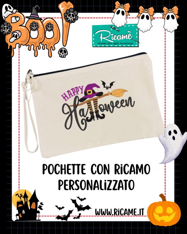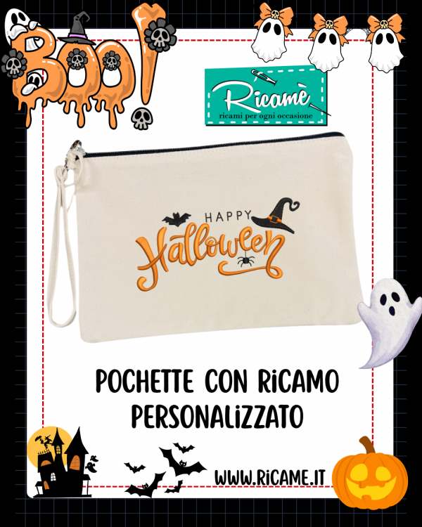Pochette con ricamo personalizzato è perfetta per custodire trucchi, accessori o dolcetti… con uno
